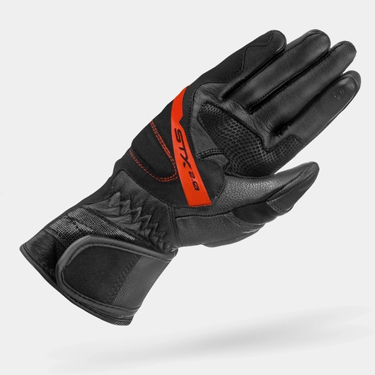 The STX 2.0 is the new addition to the tried-and-tested STX series. It is a long motorcycle glove with a sporty cut that will bring your riding to a new level of protection and comfort! The design of the gloves ensures a perfect fit and wrist hold, while the natural goat leather guarantees durability. Thanks to the internal seams and the long cuff, the model provides complete comfort and protection. New for the 2.0 model are the ArmorPlus impact absorbers and ankle protector, significantly increasing the level of safety. A combination of natural leather and breathable fabric at the wrist provides effective ventilation, while inserts on the laser-reinforced leather cuff area increase grip in all weather conditions. Additional features such as a hook & loop fastening and a visor wiper make the STX 2.0 gloves the perfect choice for anyone who values both protection and comfort when riding. The STX 2.0 is a glove that combines advanced protection technology with maximum comfort. The model is available in sizes S to 3XL in four colour versions: black, black with fluo, black with white and black with red. The STX 2.0 model is also available in a Lady version.