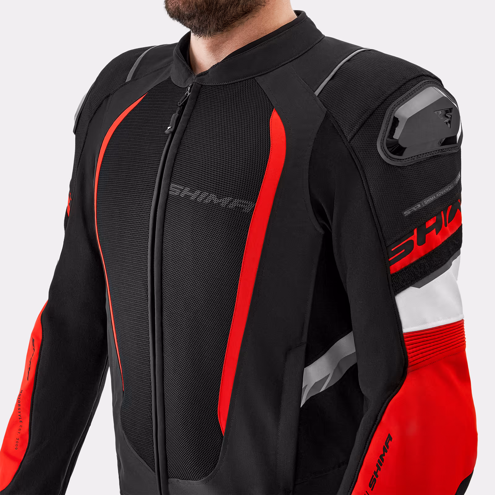 - breathable, certified Airforce™ by SHIMA back, shoulder and elbow protectors