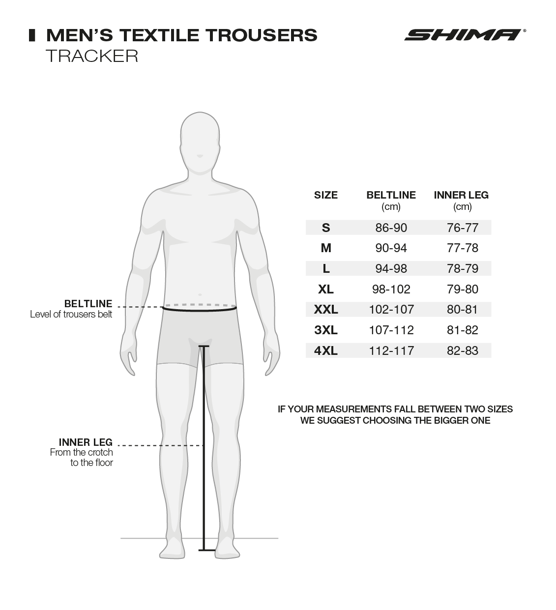 SHIMA TRACKER motorcycle trousers are a versatile choice for touring and ADV enthusiasts, combining safety and comfort. Made of polyamide and CORDURA RIPSTOP®, they are extremely resistant to abrasion and wear. Equipped with SHIMA GFLEXX level 2 knee protectors with 3-stage adjustment and SHIMA GFLEXX level 2 hip protectors and the DuoLayer Protection™ system, they provide advanced protection. The three-layer construction, with a waterproof ProDry™ membrane with 28,000 water resistance and 8,000 breathability and a 100g filling warmer, allows for adaptation to different weather conditions. The ProDry™ membrane can be worn under or over trousers, offering flexibility and protection from the rain. Large ventilation panels on the thighs with Fidlock® magnetic snaps and an advanced ventilation system ensure optimal air circulation on warmer days. Available in a classic version, the TRACKER trousers feature Velcro adjustments at the knees, zips and Velcro at the leg ends, and stretch panels for comfort and easy fit. 360° zip fasteners and a short zip allow them to be connected to the TRACKER jacket to create a complete touring set. Waterproof pockets, a Night Vision system with reflectors and dedicated braces included in the set increase functionality. The trousers are available in sizes S-4XL in classic length, in three colours to choose from: BLACK, GREY, LIGHT GREY.