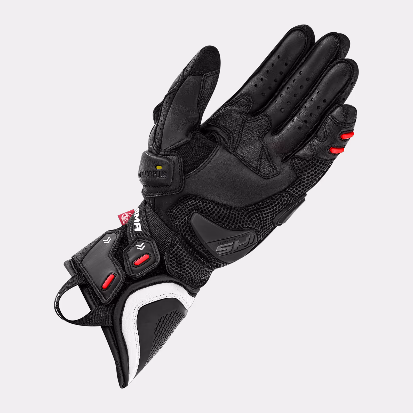 The SHIMA RS-3 Lady gloves offer unrivalled protection by using tough goatskin leather and extremely flexible and durable kangaroo leather. The SAP sports palm slider, hard knuckle protector with carbon reinforcement and memory foam guarantee high impact resistance. A mini slider below the little finger and TPU sliders on the fingers provide additional protection, while the bonded outer fingers prevent them from curling up during an accident. Additional ArmorPlus foam absorbers and reinforced leather areas enhance protection, while the neoprene cuff and V-Lock Pro™ fastening ensure a perfect fit and the confidence that the gloves will stay in place.