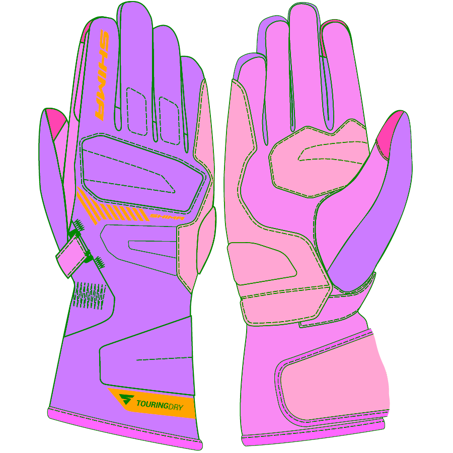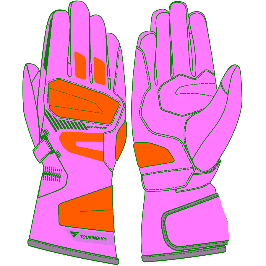 The motorcycle season never ends with the Touring Dry gloves. Warm and waterproof, yet lightweight. The long cuff with a drawstring allows you to wear them comfortably over a jacket sleeve.