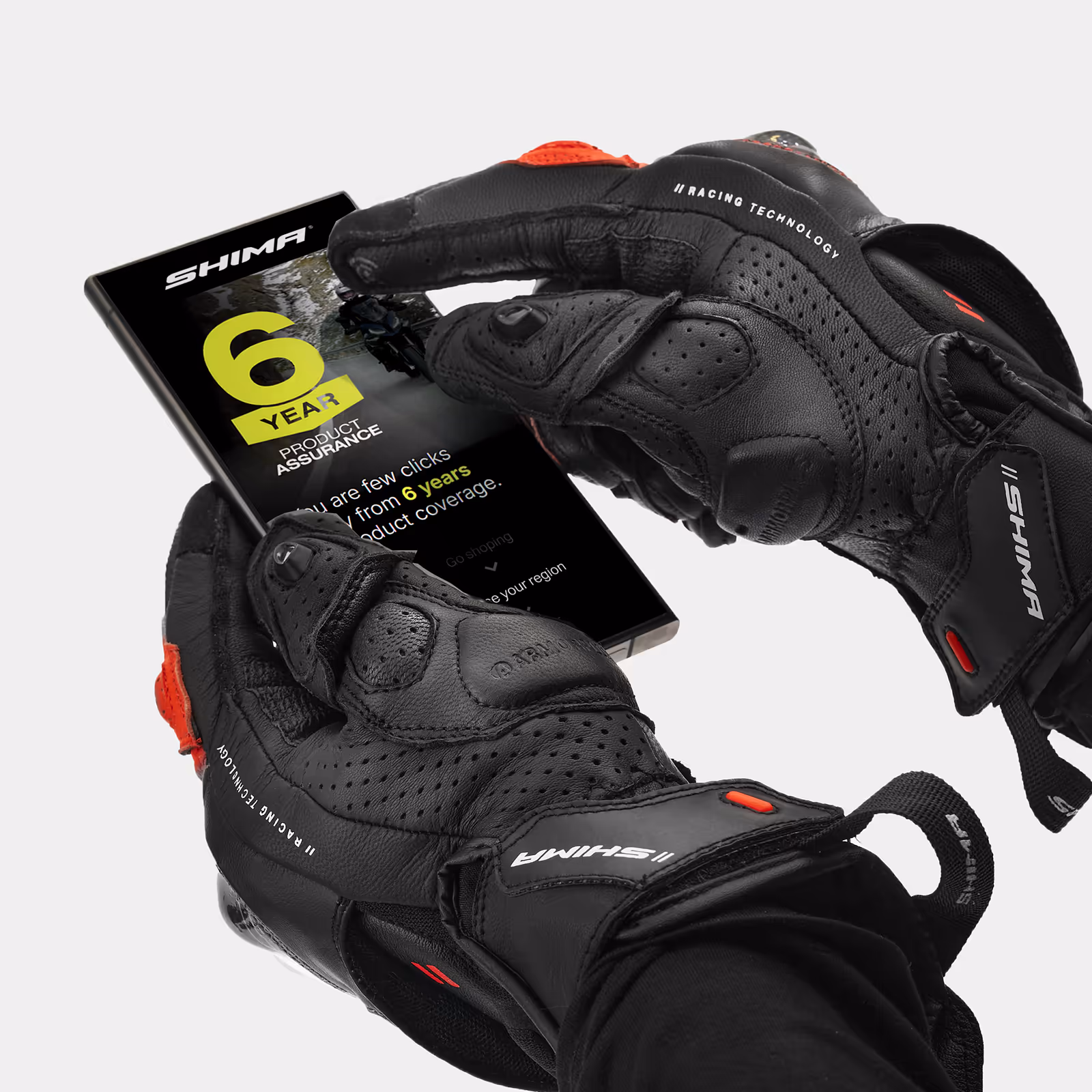 Motorcycle gloves certified according to EN 13594:2015, meeting the requirements of category 2 with KP1 level knuckle protection